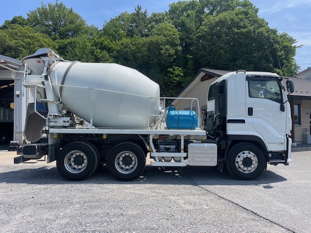 №3653 カヤバMR4201 ドラム容量8.3㎥ 最大混合容量4.2㎥ 電動アルミホッパーカバー サブシュート付 汚水箱付 アルミホイール